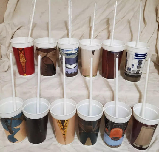 1999 Phantom Menace Collectibles (per topper and cup) in original packaging. Picture for display only!